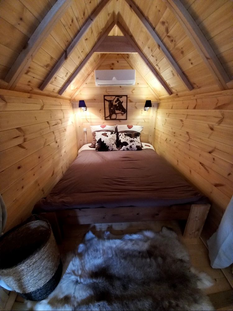 Le coin nuit dispose d'un lit double pour garantir des nuits paisibles et réparatrices. Ce cadre intime et cosy est parfait pour une escapade à deux, alliant confort et sérénité.