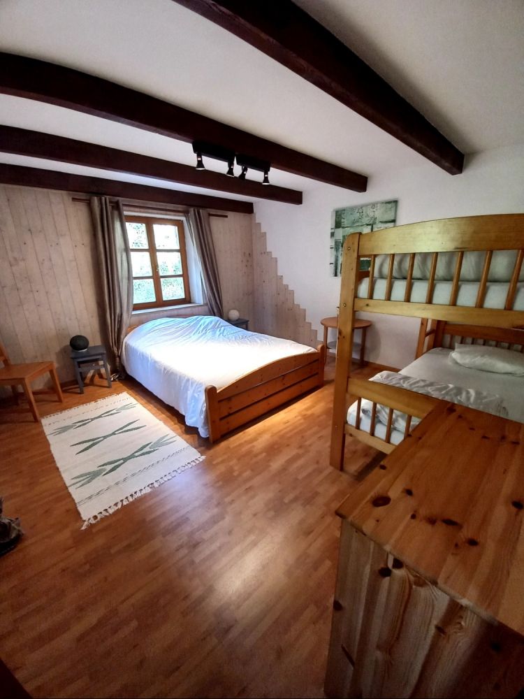 - 1 chambre avec 1 lit double et 2 lits simples superposés, idéale pour les familles ou groupes d’amis