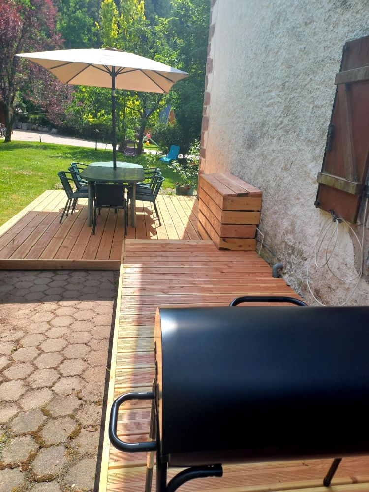 Le grand salon avec cheminée à l’âtre est l’endroit idéal pour des moments de détente en famille ou entre amis, surtout lors des soirées fraîches de montagne. Profitez de la terrasse ombragée pour vos repas ou moments de relaxation en extérieur.